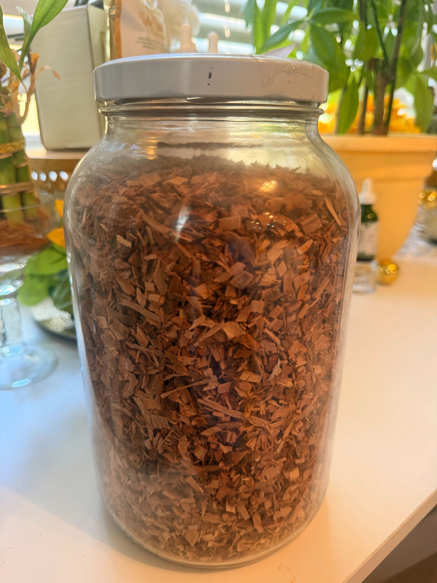 Size: Gallon glass apothecary jar filled with dried white willow bark